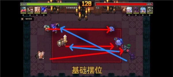 1.最基础的摆位方式是,坦克放在前排中间位置,后排角色则安排在后方并相互分开,战士的位置相对灵活,没有特别严格的要求。(像“盾三暗”这种组合就是这样,不管怎么调整站位都不会有太大问题,不过这也意味着它的强度上限自然不会特别高)