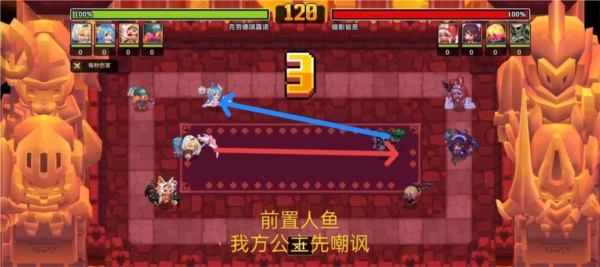 如果敌方在前方布置了土盾,我方可以把公主放在前排并开启1倍速,这样公主能在土盾释放嘲讽重置索敌的前一刻被嘲讽到,直接让公主去撞停土盾。