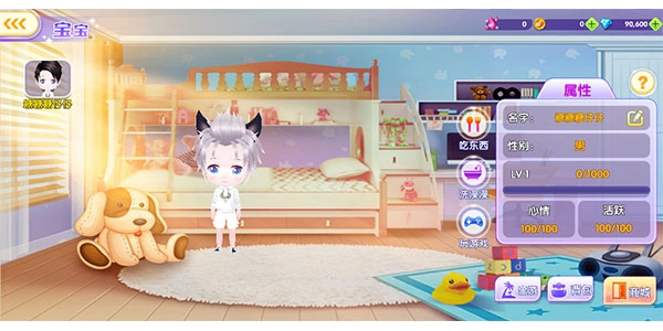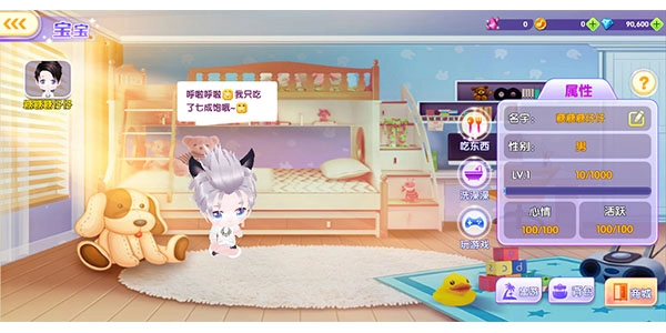 宝宝吃饭可以提升经验值,玩耍能增加心情值,洗澡则会提高活力值。现阶段宝宝的最高等级为5级。