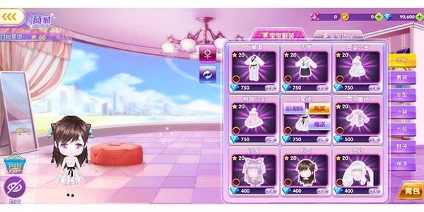 点击宝宝界面的商城按钮,就能进入宝宝商城,为宝宝选购发型、服装、鞋子等物品。