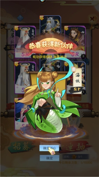 6、修仙途中,你可以挑选伙伴,点击十连抽功能,抽取属于你的修仙伙伴。