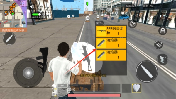 3、在跳伞环节,玩家可自主选择降落地点,落地后通过搜索建筑物来收集物资,获取武器、防具、药品等各类道具。