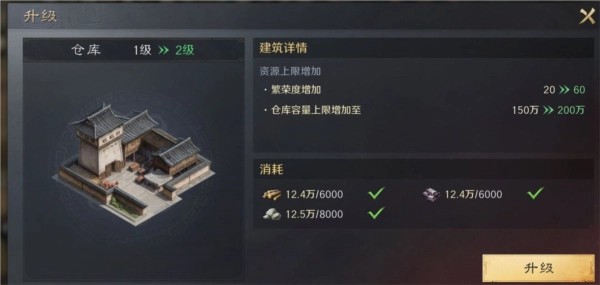 三谋里建筑的建造和升级都是瞬间完成的,既不用等时间,也不需要用玉石加速。通常情况下,也不会有需要特意攒资源升级建筑的情况,按照任务流程正常升级建筑就可以了。