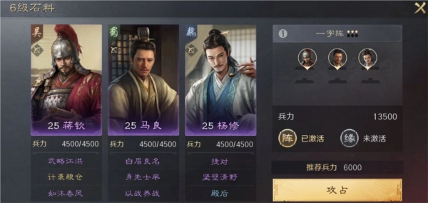 在确保自己能稳定一次攻克6级地的前提下,再考虑开启内城6级地的攻略;具体的开地等级需结合自身抽中的开荒阵容灵活调整。若首次尝试便能一次拿下6级地,建议接着挑战外城地,验证是否能持续稳定地一次通关。内城6级地开启后,优先进行屯田操作,集中完成主线任务;此时会获得大量体力,可用于扫荡6级地或继续开拓新的6级地,直至等级提升至25级,进入下一阶段的发展。