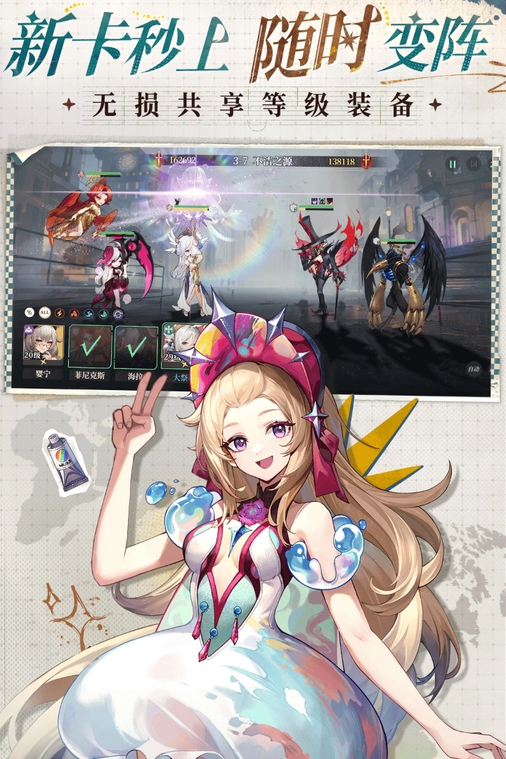 3、卡牌收集与养成玩法深度融合!5星SSR英雄阵容轻松抽取!