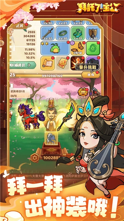 1、在《拜托了!主公》这款游戏里,你能够通过多种多样的方式去塑造属于自己的角色,拥有着无穷无尽的可能性。
