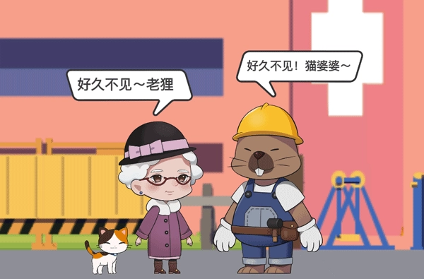 猫婆婆已经在这里等你啦,她还把老朋友老狸也请来了。老狸是大力施工队的包工头,之前还帮猫婆婆夫妇盖过幸福公寓呢。接下来的日子,就由老狸带着施工队帮你建房间啦!