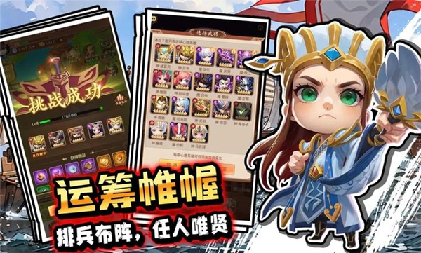 3、百位武将,英雄尽览:百位武将组成的壮观队伍!这些英雄来自不同背景,各有独特技能与故事!培养并组建你的梦幻阵容,每位英雄都将成为你战斗中的得力助手!