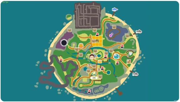 如图所示,这是一座范围相当广阔的小岛,要是没有载具辅助,步行起来会比较吃力。尽管地图面积不小,但其内容十分丰富,包含了众多玩法与局内互动元素。
