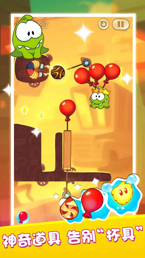1、玩家能够挑战一百多个不同的关卡,目标是把每个关卡里的糖果送到这些怪兽的嘴里。