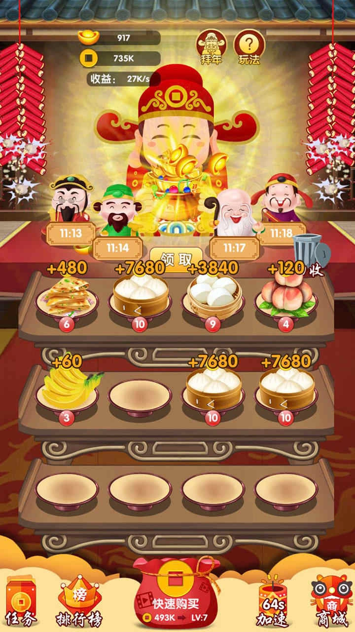《家有财神2》是一款卡通风格的民间祈福休闲小游戏,围绕中国民间传统祈福习俗文化展开,涵盖福禄寿喜财与五福临门等核心元素。游戏采用趣味合成玩法,玩家可通过合成高级贡品提升收益,还融入了接福养成等多元玩法。它既能让玩家深入了解传统习俗,又能传递满满的祝福。