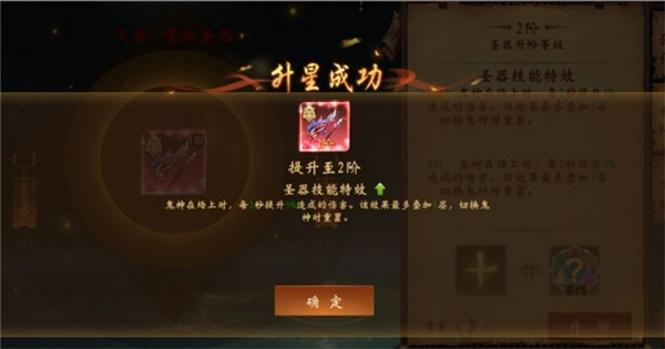圣器升阶需要消耗同名且同品质的圣器,升阶后圣器的技能效果将得到提升。