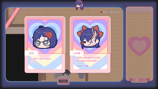 3.救援进度:在场地中拾取道具能提升顶部的救援进度条,一旦进度条填满,米塔就会被转移至右侧的安全区域。