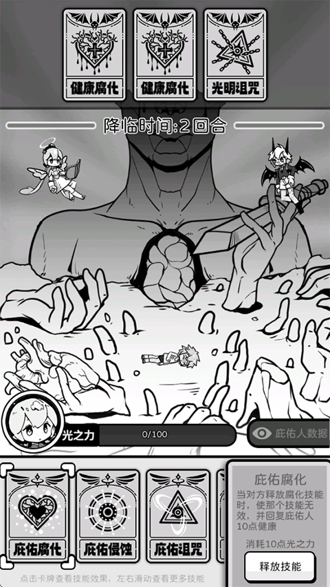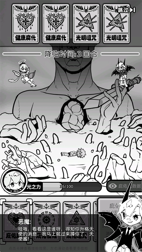 天使模拟器是一款结合肉鸽元素的卡牌策略游戏,运用独特的黑白动漫美术风格。玩家将化身一名新晋天使,被派往天界的救赎部,承担每个轮回里的救赎任务。通过仔细规划战斗策略,对抗来自地狱的敌对力量,在持续挑战中增强实力,逐步开启多样化的任务模式与精彩活动,感受充满变化与挑战的天使成长历程。