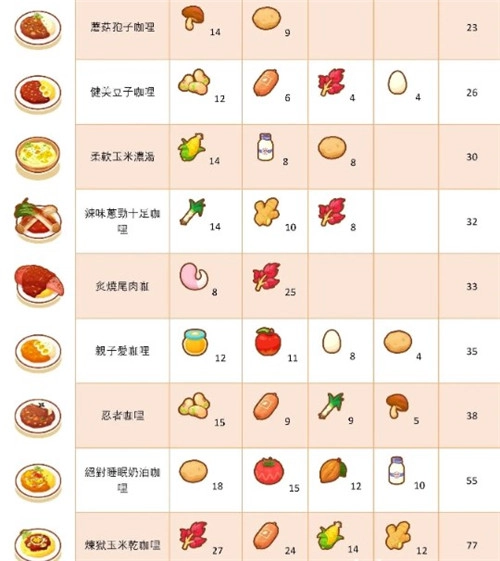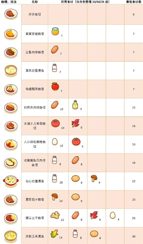 2、料理菜谱Part1:咖喱/浓汤为主材料