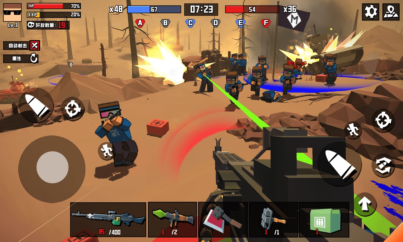 《战地精英枪战王者》是一款采用卡通方块风格制作的第一人称动作射击游戏。在这款有趣的游戏里,玩家能体验到刺激又精彩的枪战对抗玩法。游戏内提供四种职业供玩家选择,包括刺客、狂战士、狙击手和医疗师。每个职业都具备独特的专属技能,助你在战场上所向披靡。
