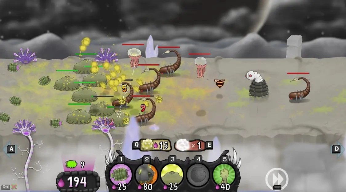 《异虫女王》属于策略对冲类型的游戏。玩家将扮演虫族女王,通过孵化具备不同特性的虫族兵种,结合相应战术来抵挡敌方的进攻。游戏的核心玩法由吞噬进化和资源管理两部分构成,玩家需要对资源进行合理分配,以此实现虫群的升级以及防御设施的建造,在微观战场上凭借策略来夺取领地。