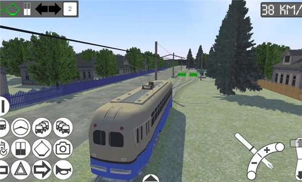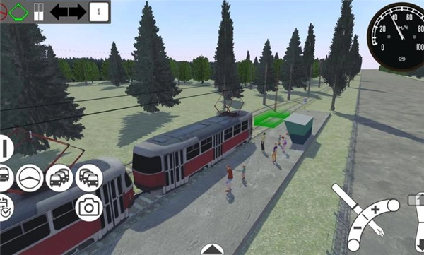 驾驶控制采用三段式档位设计:屏幕右下角的虚拟摇杆向上推是前进档,中间位置为空挡,向下推则是倒车档。加速和减速由摇杆的倾斜角度来控制,其力度反馈与现实中的电车保持同步。转向系统具备自动与手动双模式:当电车沿着预设路线行驶时,转向灯会自动切换;一旦脱离预设路线,就需要手动开启方向灯。