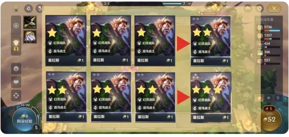 5.升星规则:3个相同星级的英雄能够进行升星操作,英雄的星级上限为3星。