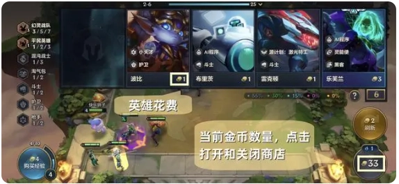 2.点击英雄即可完成购买,购买后的英雄会进入备战区;若要关闭商店,点击商店界面或屏幕上的任意空白区域均可。