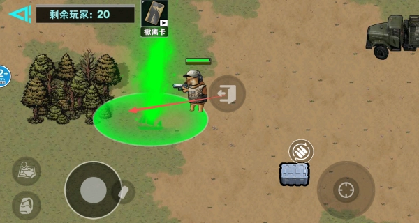 1、进入战场后,主动寻找场景里的各类资源,靠近物资点击就能拾取。