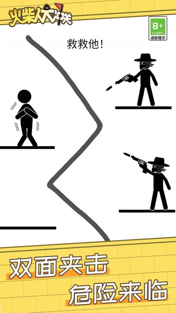 1、想找个消磨时间的好法子?这款《火柴人大冲关》采用了当下超火的画线闯关核心玩法,现在,火柴人正需要你的助力!