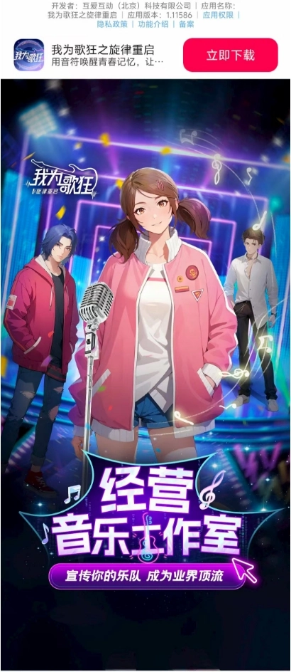 《我为歌狂之旋律重启2025》本是为大家倾情打造的惊喜呈现,这是由互爱互动(北京)科技有限公司精心制作的超人气动漫《我为歌狂之旋律重启》IP授权的同名作品。熟悉的原著动漫角色将以卡牌形式呈现,等待你收集与养成;还有完整的女明星歌手成长计划,以及多元化的音乐工作室经营模拟挑战玩法,让你沉浸其中,直呼过瘾!