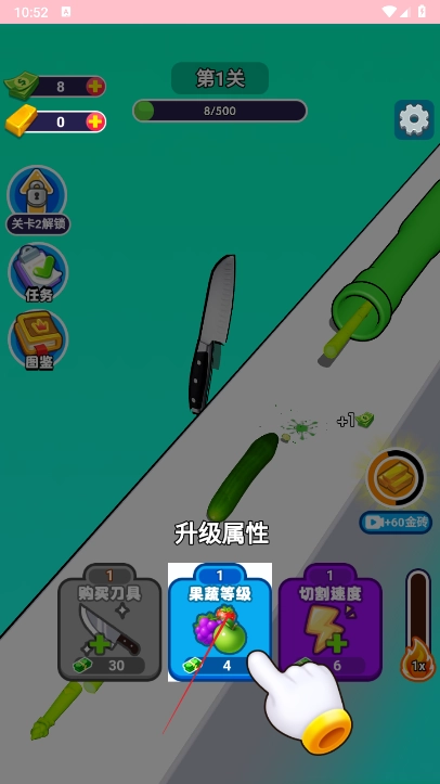 玩家完成特定等级或任务后,能获取经验与金币。当积累到足够资源时,他们就可以前往商店购买更厉害的厨刀,以此提升切割的速度和精准度。而高级厨房还会解锁新的切割特效,进而带来更丰富的视觉体验。
