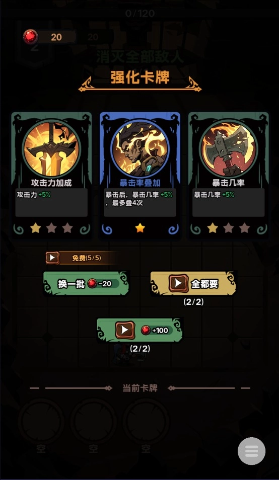 3、挑选技能以增强卡牌的战斗能力,卡牌的颜色是其品质的标识。