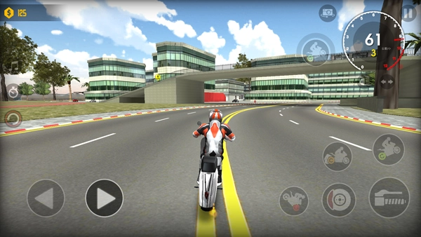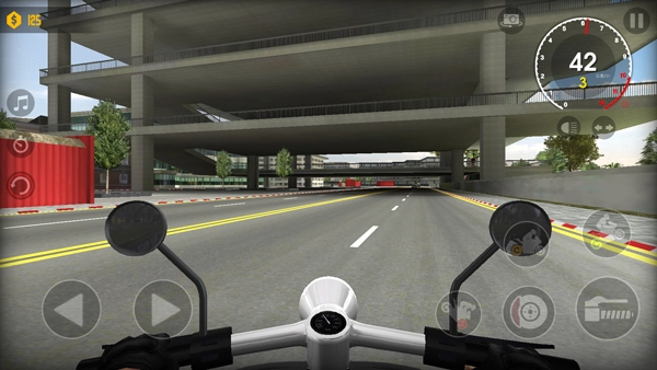 1、主要运用重力感应技术进行操控,操作方式直观且简单,借助倾斜动作即可控制摩托车的转向方向。