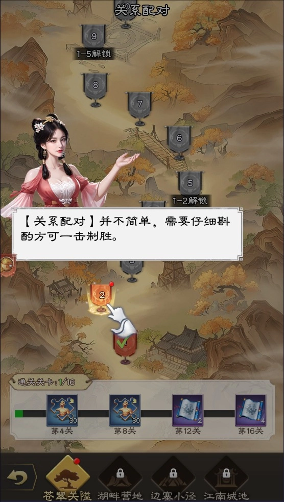 《通关第一名》是一款兼具策略深度与卡牌收集趣味的游戏。以全新三国题材为背景,融入休闲益智玩法,既重现了三国时期波澜壮阔的历史场景,又为玩家打造了展现智谋与战术的平台。玩家可搭配不同能力的武将,轻松完成战斗。