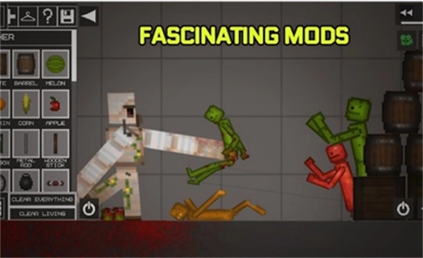 2、你能够自由布置各类角色,还可以让武器、炸弹、车辆、化学制品与火、雷、力等自然元素进行互动,元素设计十分丰富;