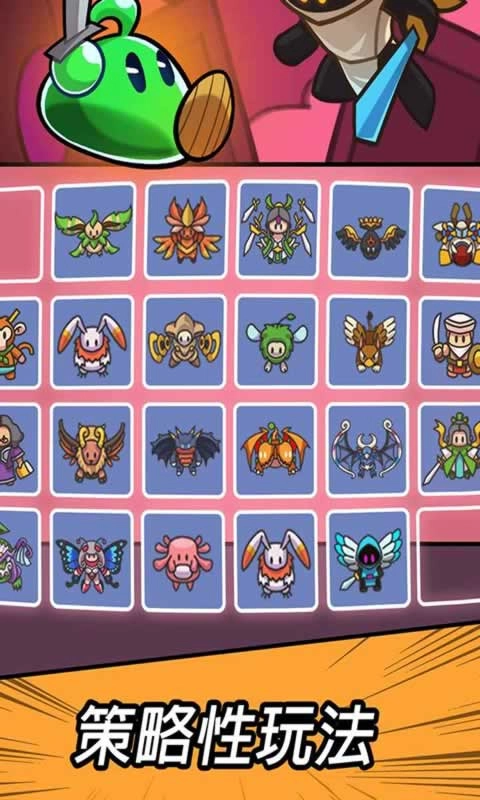 1、竖版的界面设计,众多角色都能自由升级,成长体验简单纯粹,喜欢策略休闲玩法的话可别错过!
