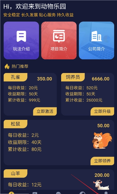 动物乐园是一款超有趣的动物主题首码项目,召唤各类动物就能助力你挂机获取收益,模式十分可靠,既支持零成本体验的玩法与乐趣,每天还能完成大量任务。感兴趣的朋友赶紧来尝试吧!