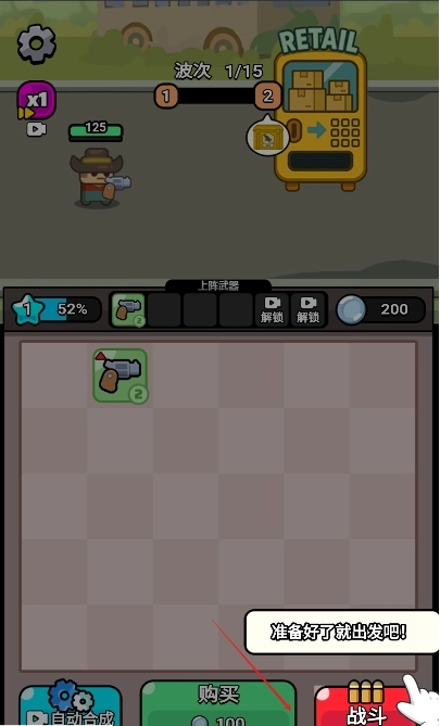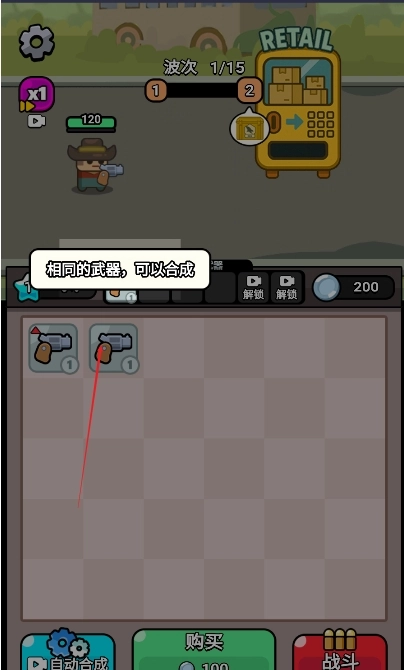 1.在零售机购买武器后,相同星级的武器能够合成更高级别的武器!