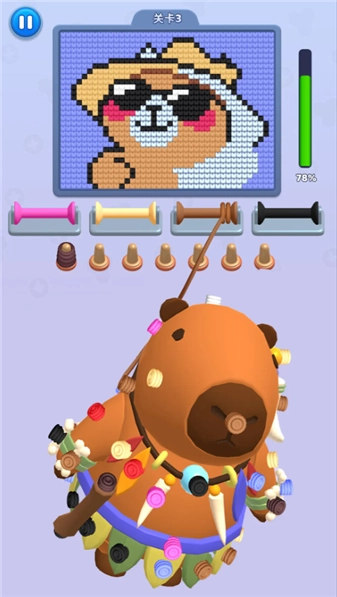 1、由毛线球堆叠而成的拼图有着丰富多样的结构形态,并且随着关卡的逐步推进,目标颜色的切换频率也会越来越高。