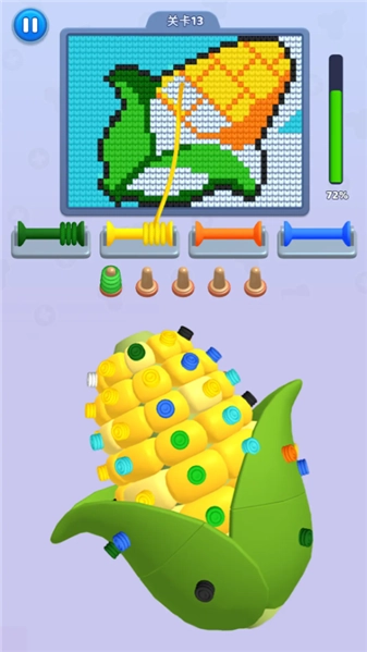 2、玩家可通过不断消除毛线球来解锁更多色彩,进而完成像素画的绘制,以此体验从收集到创作的完整过程。