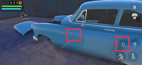 1、在游戏中,玩家需要先把汽车上的所有零件都装备到车上,点击手掌按钮来拾取零件。