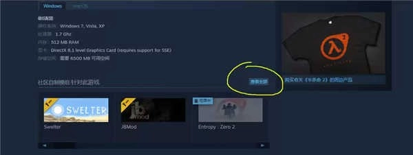 在《半条命2》的商店页面向下滚动,能看到“社区自制模组”板块,点击右上角的“查看全部”,就能浏览所有已在Steam上架的《半条命2》模组。要是你已经拥有《半条命2》三部曲,这些模组都可以直接添加到你的库中。
