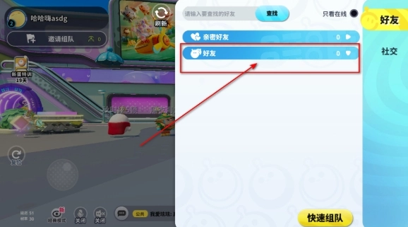 2、在好友列表里选择你想组队的好友,等对方同意后就能一起玩啦!