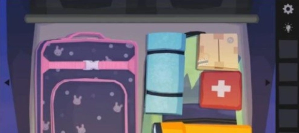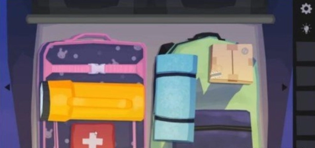 6、先按照下图所示将物品移到右侧,就能取走左边的粉紫色行李箱。