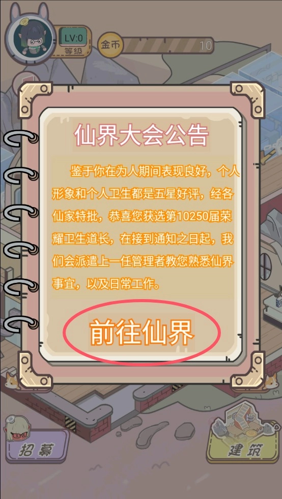 1、在本站,打开,点击前往仙界。