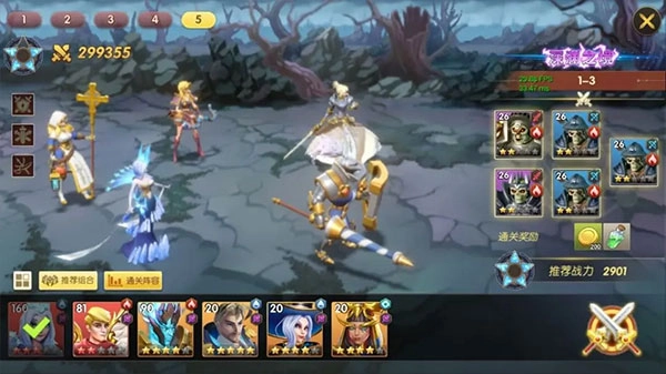 再配上新手十连抽就能拿到的S级英雄【混沌之水-努恩】,既有群体治疗又有大招控制,新手前期推图简直轻松到不行~