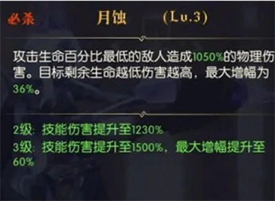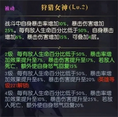 被动提升暴击率,增强攻击伤害,加快对后排的摧毁速度