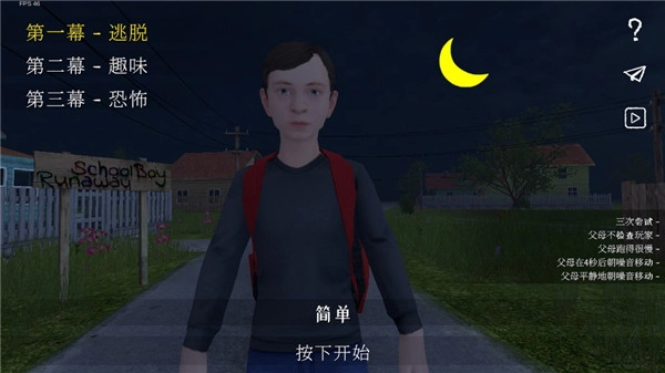 《逃离家暴》是一款动作逃跑冒险游戏。在游戏里,你将化身一名因学业不佳而被父母软禁在家的小学生。面对父母严苛的管束以及他们时刻可能察觉你逃跑计划的警惕,你必须凭借智慧与勇气,在不被发现的前提下逃出家门,和朋友们重聚。这是一场紧张又充满乐趣的冒险,能让你沉浸在与父母斗智斗勇的世界里。