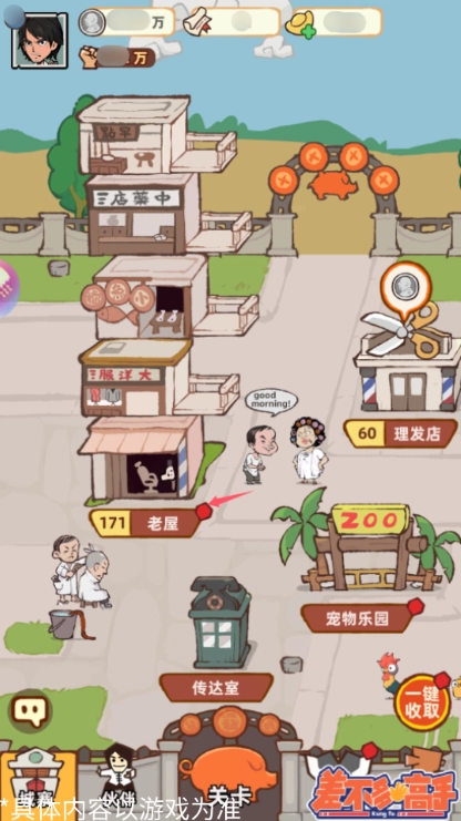 2、除了老屋外,城寨里还有能产出资源的建筑,包括理发店、五金店、桑蚕店和展览馆,只要达到对应的关卡进度,就能解锁相应的建筑。