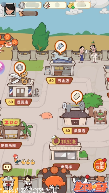 4、不同类型的建筑能产出不同种类的资源:理发店可产出银币,银币可用于建造老屋、提升宠物等级、升级藏品等;五金店能产出螺丝,螺丝可用于升级城寨里的建筑;桑蚕店可产出蚕蛹,蚕蛹能在桑蚕店内进行制衣操作,从而获取伙伴使用的武器和衣服;展览馆能产出阅历,阅历可用于升级藏品,以获得更多的属性值。