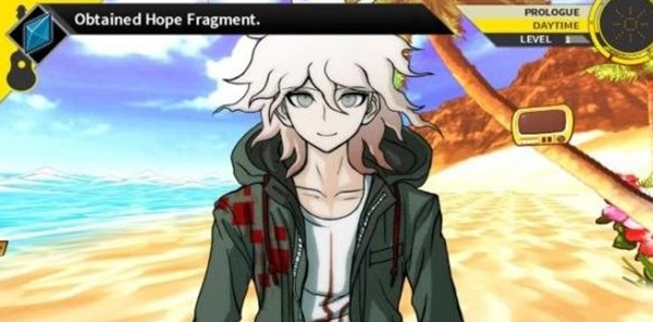 日向现在和狛枝凪斗在沙滩上,能去调查棕榈树干的“显示器”、“棕榈树树冠”、“摄像机(左)”,接着和狛枝凪斗对话。之后得点击左边的海浪放松心情才能再和狛枝凪斗对话,之后就能得到“希望碎片”,只要提高和同学们的好感度,就能获取希望碎片,在e - 手册里可以用希望碎片兑换技能。