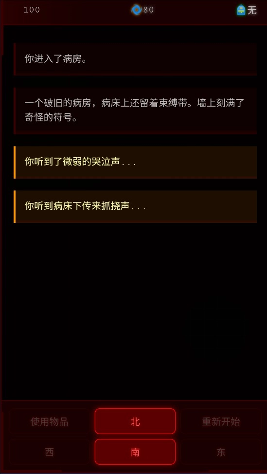 病院回廊是一款心理悬疑探索游戏,全程以文字形式呈现。玩家需要在游戏中判断自身位置,在医院里选择前进或后退的方向,通过不断探索,最终逃离这座诡异的医院。对密室逃脱类题材感兴趣的小伙伴,不妨来体验一番。