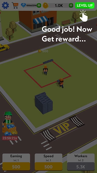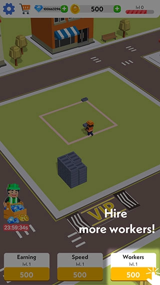 2、点击屏幕中央可以加快工人的工作速度。